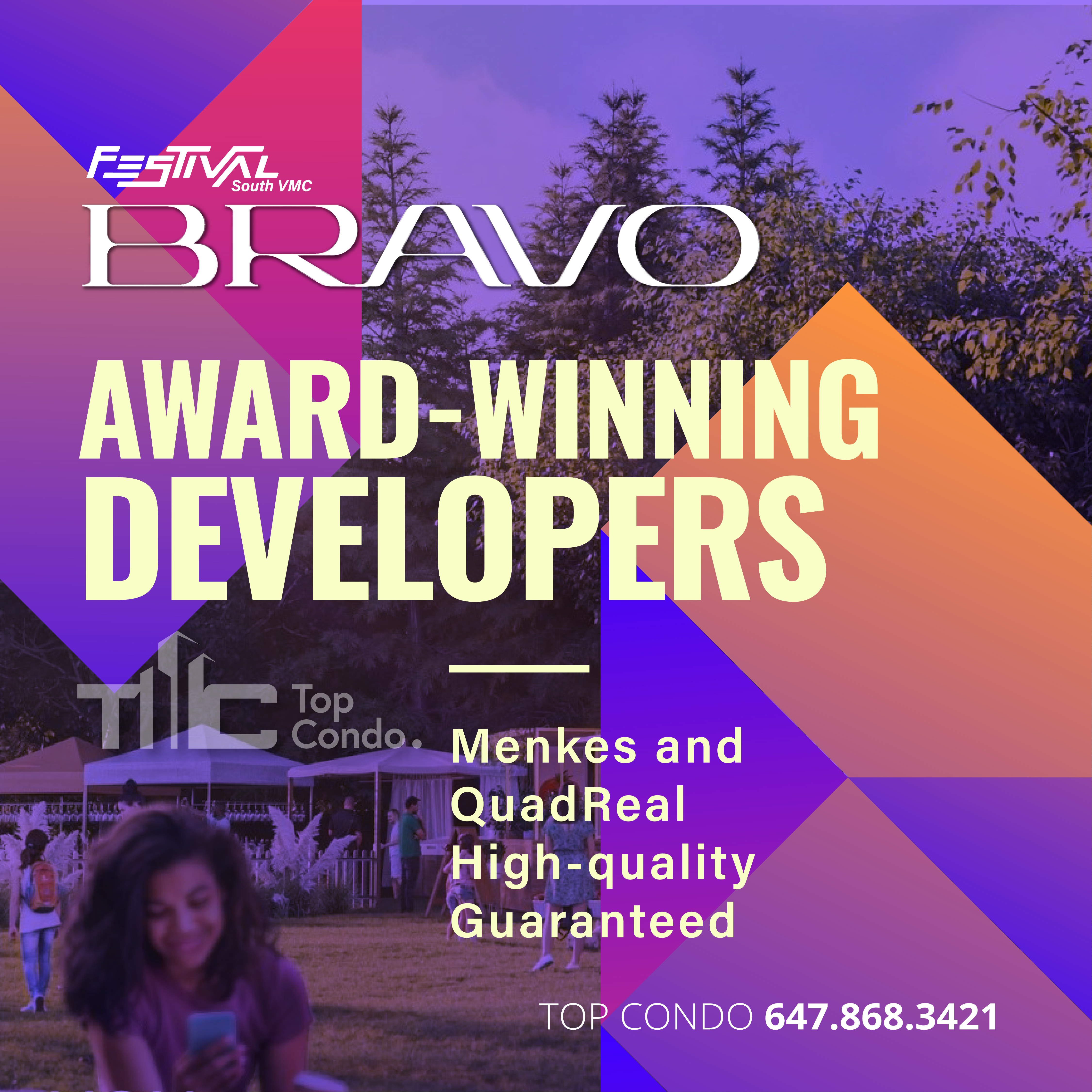 Bravo Condos and the Festival community is an exciting, large scale project being developed by award-winning developers Menkes and QuadReal which is set to become one of the country’s largest master-planned communities. Both Menkes and Quadreal are very experienced and trusted development companies in the Toronto real estate industry. Together they are committed to building Grand Landmark Festival Condos as a sustainable, vibrant, and modern project, creating a residential environment that is accessible, green, and that will enhance the lives of its residents and the surrounding community.