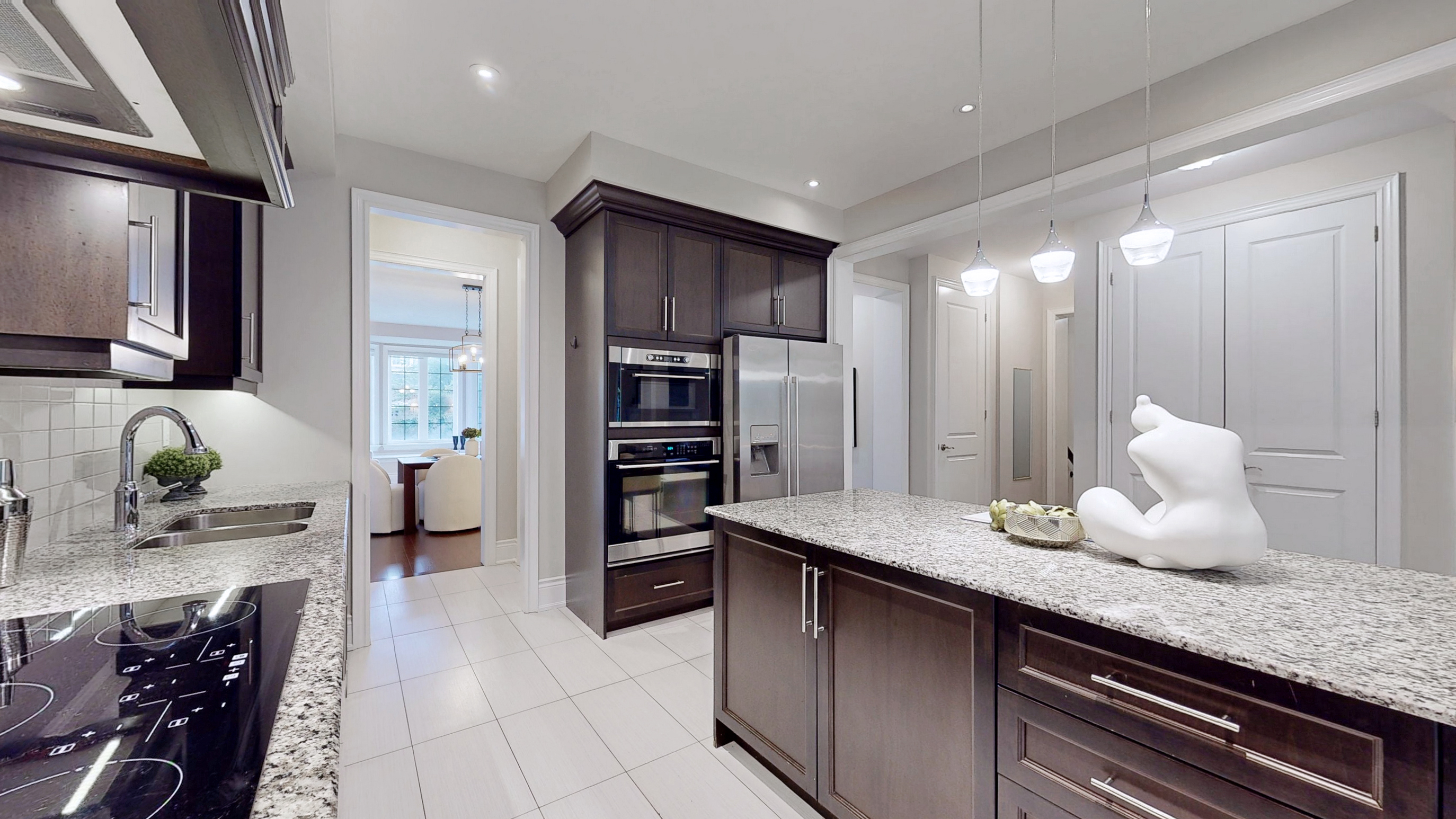 Gorgeous 8-year-new family home sitting on a ravine lot, mature trees provide a sense of tranquility and privacy. Perfect layout with no wasted space. 9 ft ceilings on all three levels. Rare find full bath on main level, which makes in-law suite possible by converting the library next to it. Open concept kitchen comes with stainless steel appliances, tall cabinets, servery area and a walk-in pantry. Double door exit from the breakfast area to the serene southwest facing backyard, perfect for entertaining and family gathering. Second floor boasts four large bedrooms paired with three washrooms. Primary bedroom feature 10 ft high tray ceiling, master retreat offers options for a nursery or an office. Fully fenced backyard sitting next to ravine. Walk to great schools, parks, trails, shopping and more. Easy access to major highways and Oakville GO station. Fridge, Cooktop, Range hood, Oven, Microwave, Dishwasher, Washer and Dryer, All existing window coverings and ELFs.