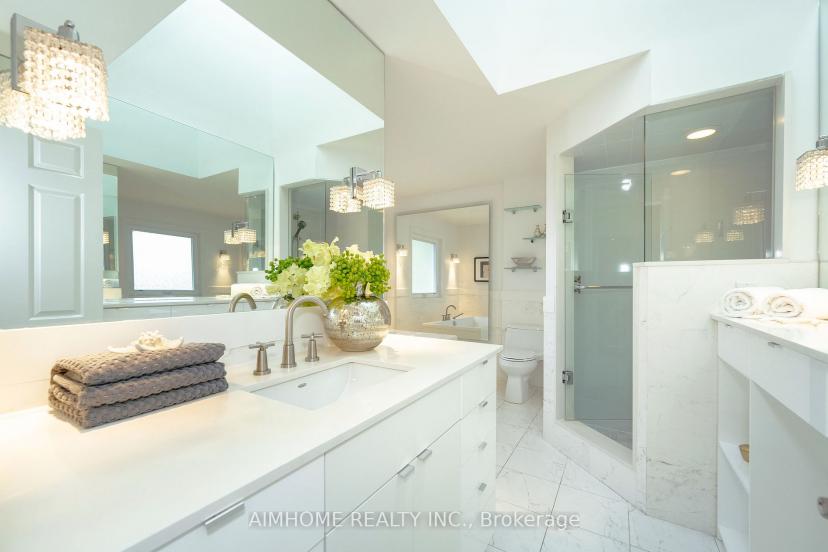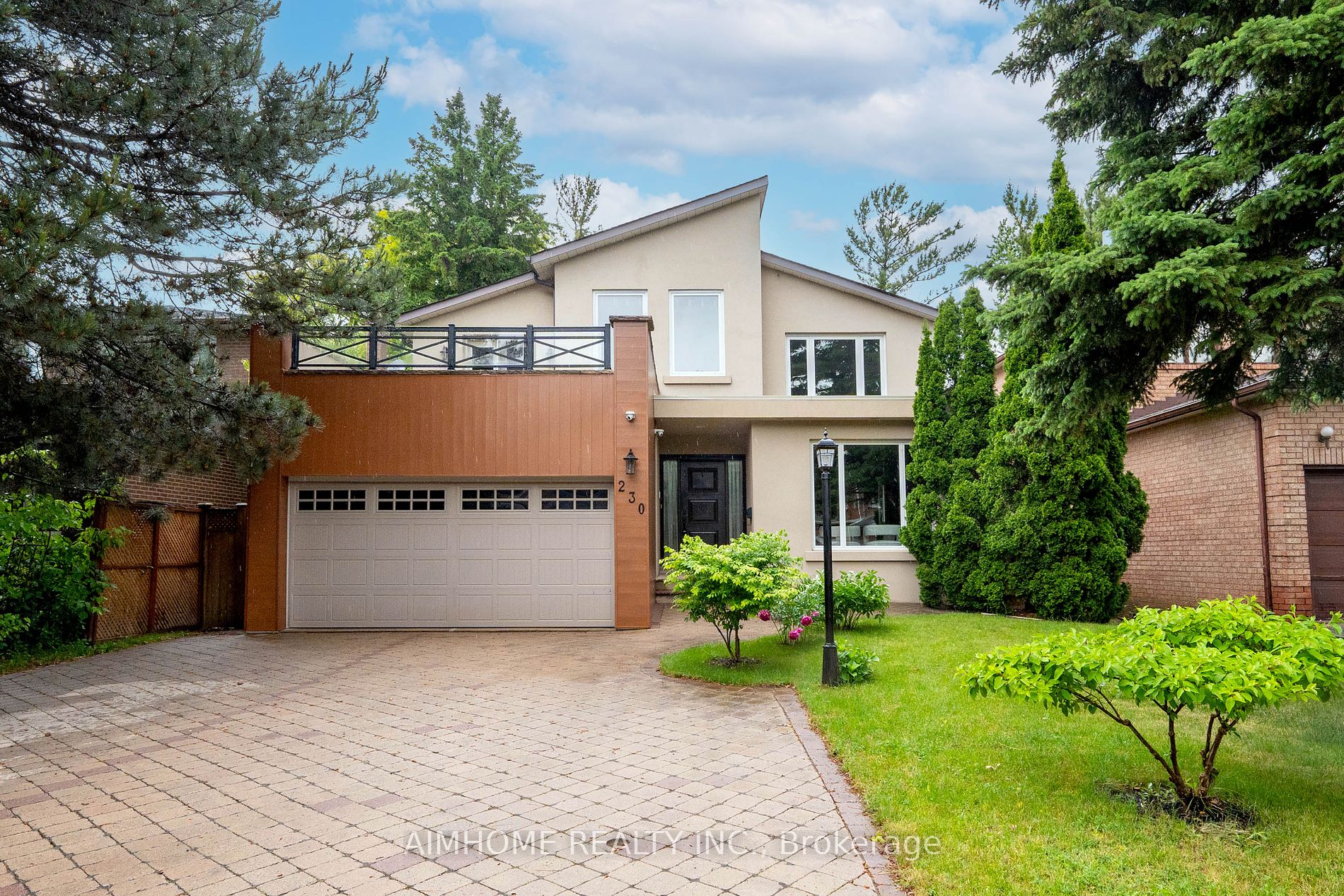 Welcome to 230 Spring Gate located in the high-demand prestigious community of Thornhill! This home sits on a desirable 50x120 lot, backing onto multi-million-dollar homes. Its contemporary exterior is complemented with a traditional, family-oriented interior floor plan. As you step through the front door, you are greeted by a grand 2-storey foyer filled with natural light. Skylight in the hallway creates an airy and spacious atmosphere throughout the house. This home contains large living and dining rooms. The kitchen with an island positioned directly towards the family room and a TV wall, is ideal for family interactions and gatherings. Breakfast area is embraced by windows and a double door, creating the best view for your morning coffee. Office has sliding doors opening to the family room, providing more privacy. Direct garage access from the mudroom. Circular staircase leads to the second floor, which contains 4 large bedrooms and 3 bathrooms. The primary bedroom ensuite offers a heated floor, a standalone tub, a makeup table, and an additional skylight (Velux 23'). In addition, you can find a fully fenced backyard, walk-up basement, and a deep interlocked driveway in this home. 3119 sqft as per MPAC. Outdoor security cameras, video doorbell, roof (23'), gutter (22'), sidings (22'), deck with a BBQ gas line, sprinkler (as-is), CAVC (as-is). Top ranking schools nearby, only 5 mins drive to Hwy 407 and 10 mins to Finch subway station. Gas stove, range hood, fridge (19'), dishwasher (21'), washer (22'), dryer, Under-sink water filter system, furnace, AC (19'), B/I cabinets in the office, all elfs.
