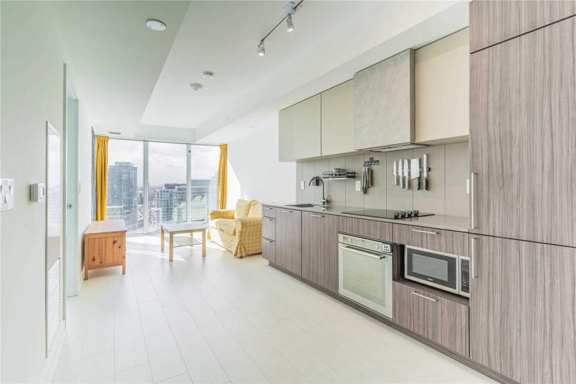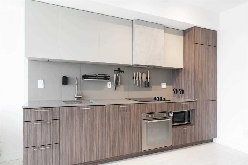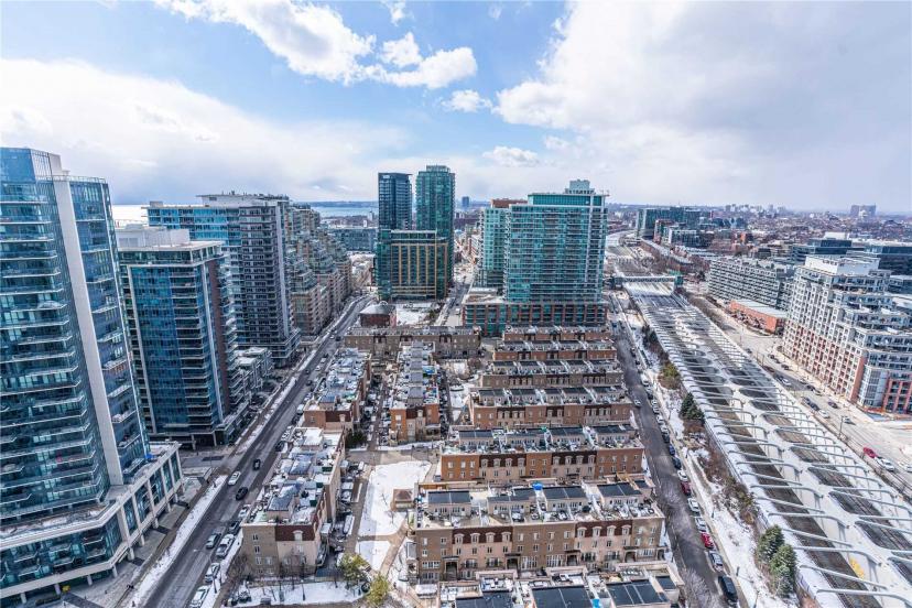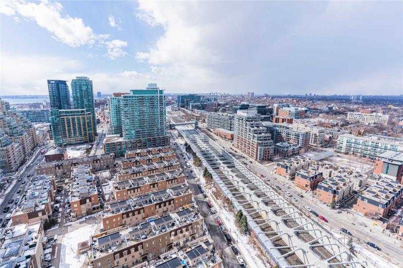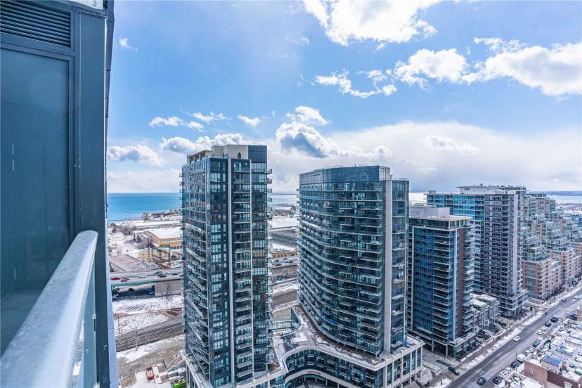 Located At The Heart Of Liberty Village. Bright 2 Bedroom Unit With Unobstructed West Sunset View. View Of The Lake, The City, And The Park Too. Floor To Ceiling Windows, Laminate Floors Throughout, Modern Kitchen With Integrated S/S Appliances, Backsplash & Quartz Countertop, Steps To Transit, Shops, Restaurants, Bars, Cafes, Supermarket & Eateries. Building Comes With A Running Track Besides Your Regular Gym. Fridge, Stove, Cooktop, Range Hood, Dishwasher, Microwave, Stacked Washer & Dryer. All Existing Window Coverings And Elfs.