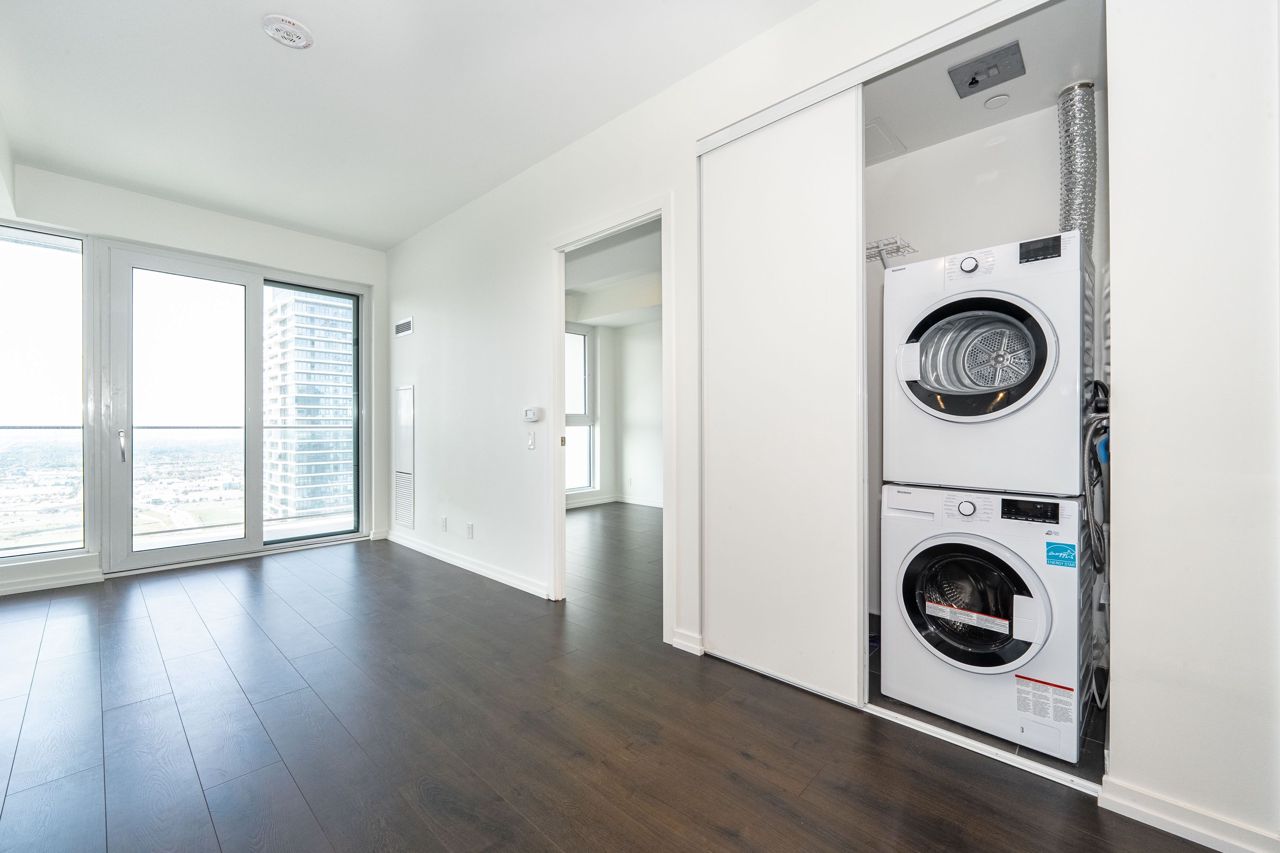 Move-in ready with brand-new flooring and fresh paint! Welcome to Transit City 5, the newest addition to the popular Transit City community. This functional 1+1 unit offers 2 full bathrooms and a den with a door that can easily serve as a second bedroom. The west-facing exposure provides unobstructed park views, while the large, side-to-side balcony extends your living space outdoors. Ideally located at the Vaughan Metropolitan Centre transportation hub, youre just steps from the TTC subway and regional bus terminal. Residents enjoy 20,000 sq. ft. of premium amenities, including multiple green roofs and terraces, a training club, rooftop pool with luxury cabanas, BBQ area, co-working spaces, and a Hermès-furnished lobby. Maintenance fees include internet.